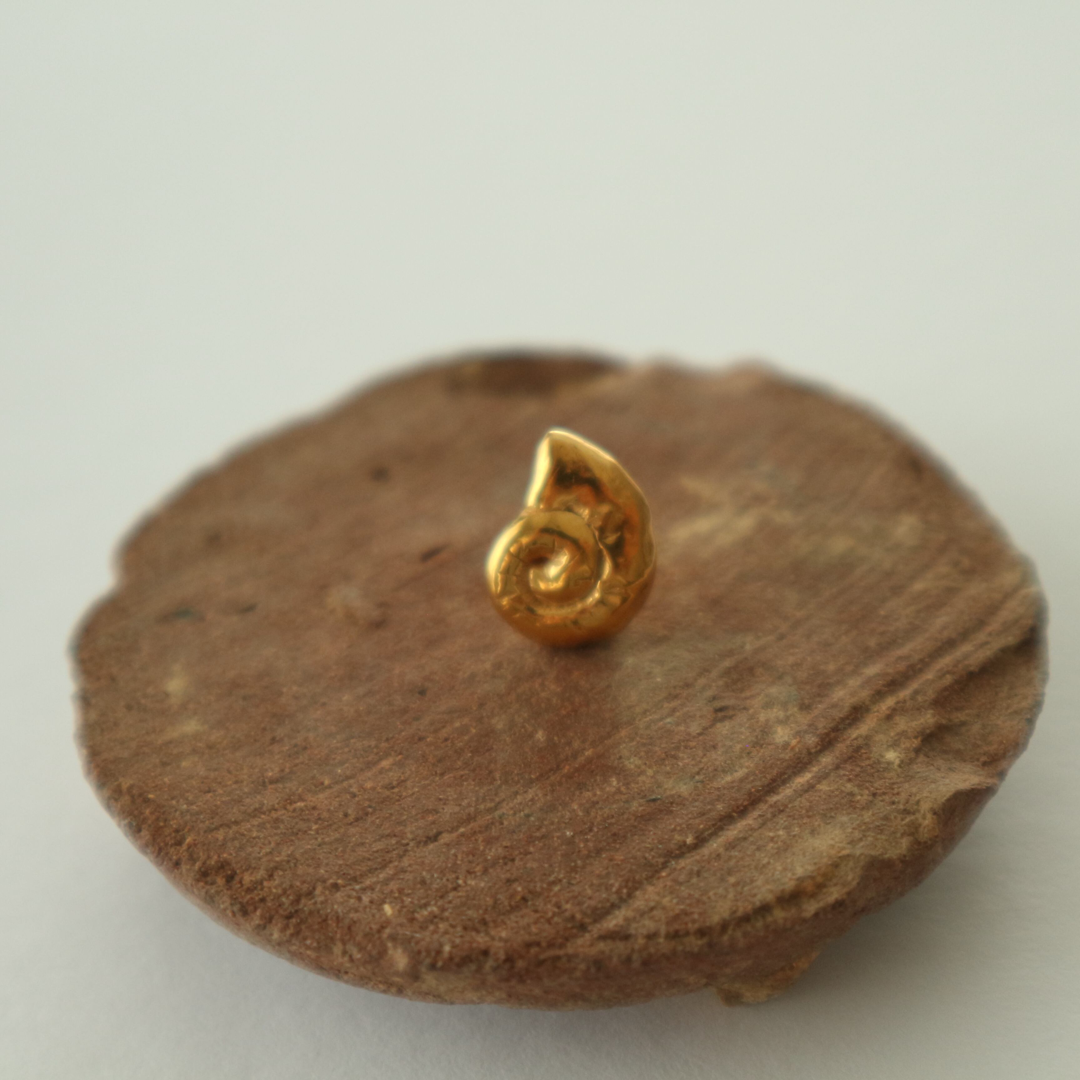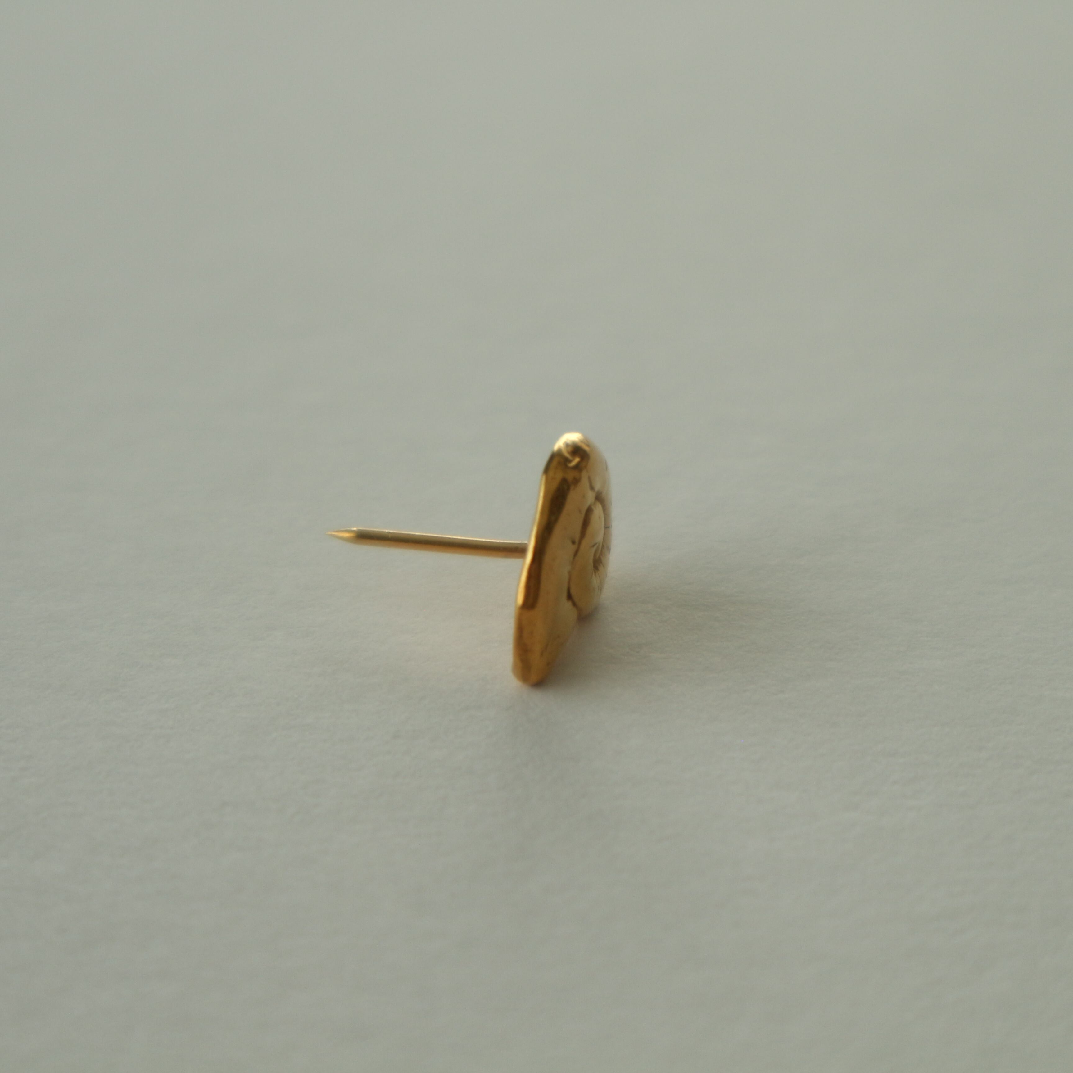アンモナイトの化石をモチーフにしたピンバッチです。