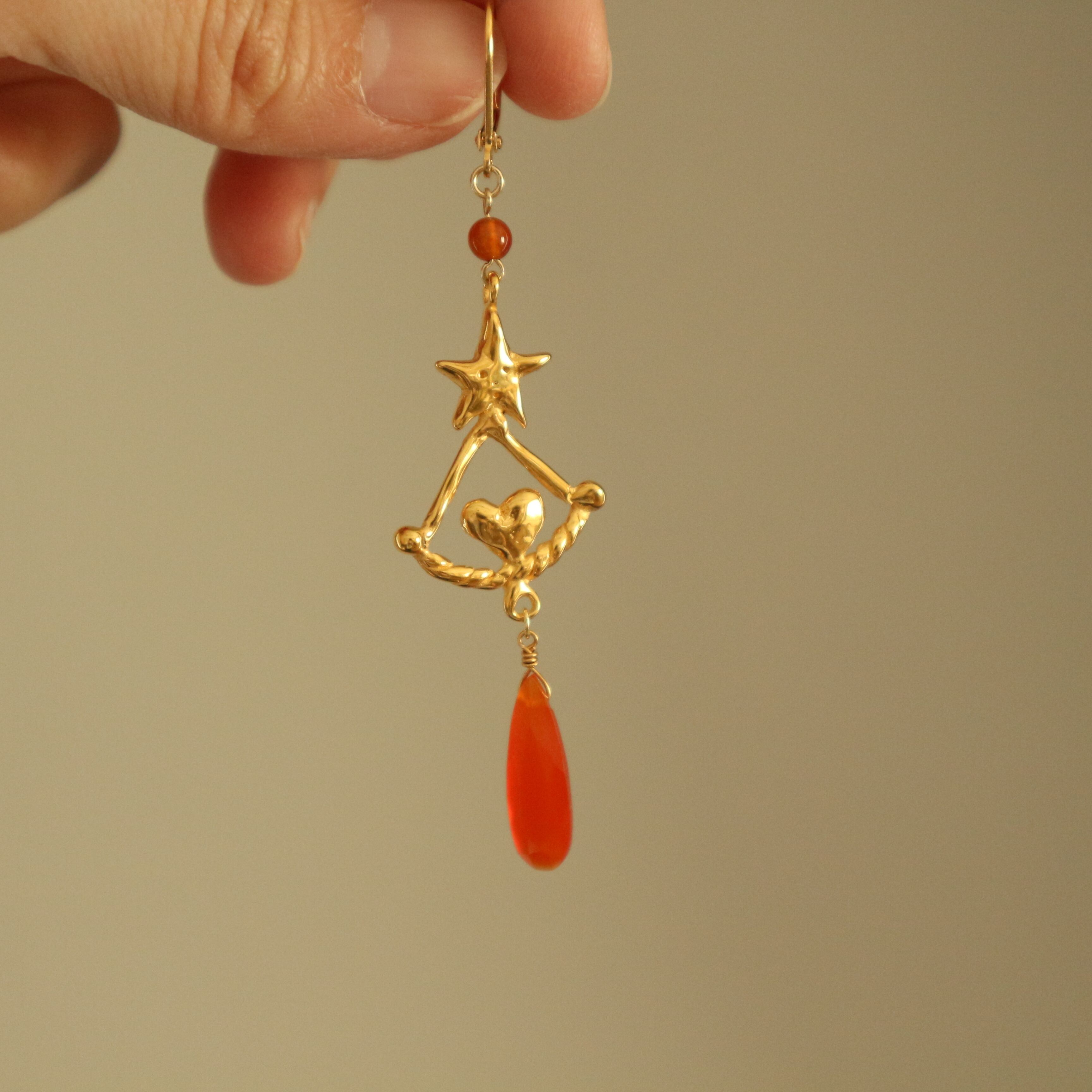 カーネリアン色の恋と星のピアス(イヤリング)