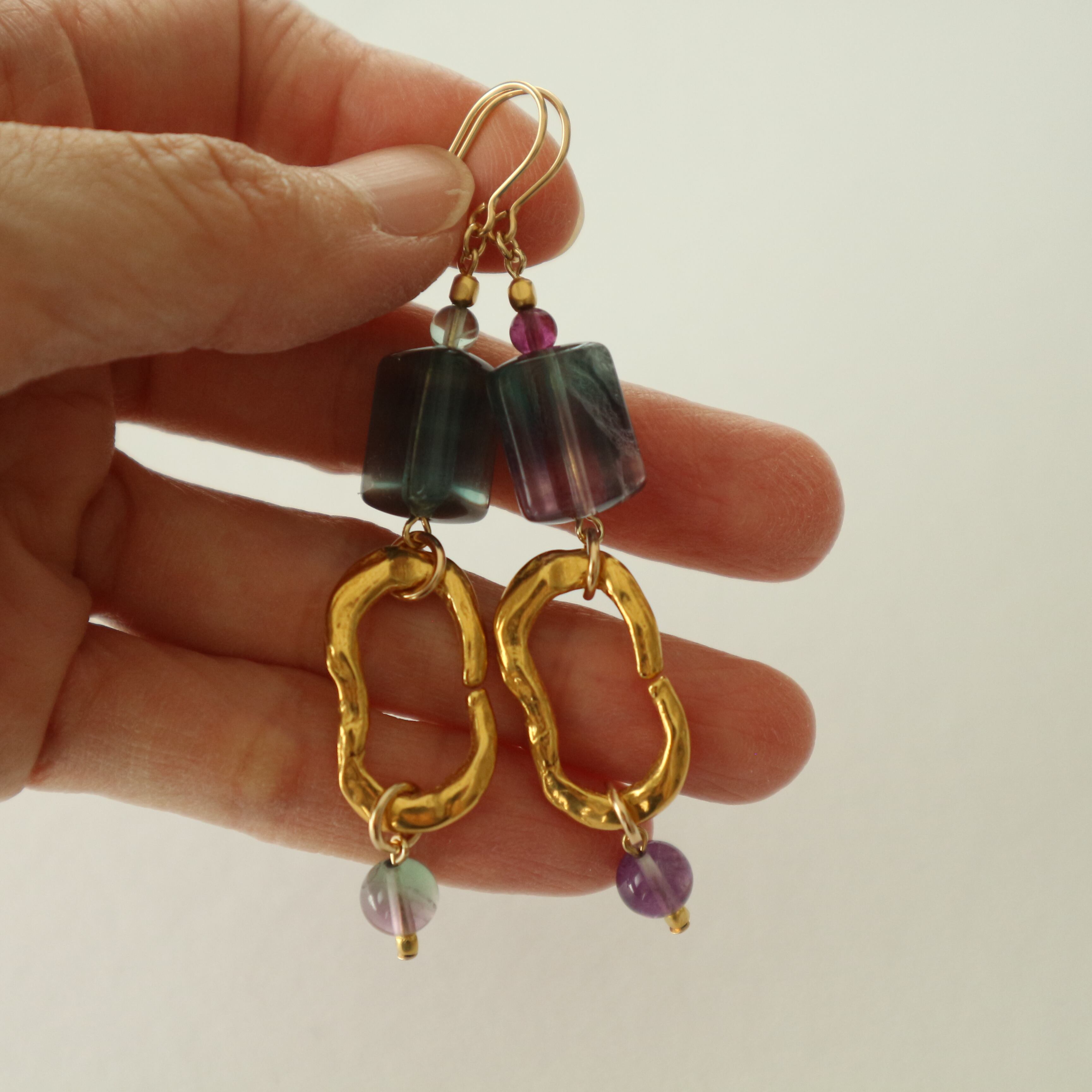 使用しております、三角柱の形をしたフローライトはまさしく海の色のようです。