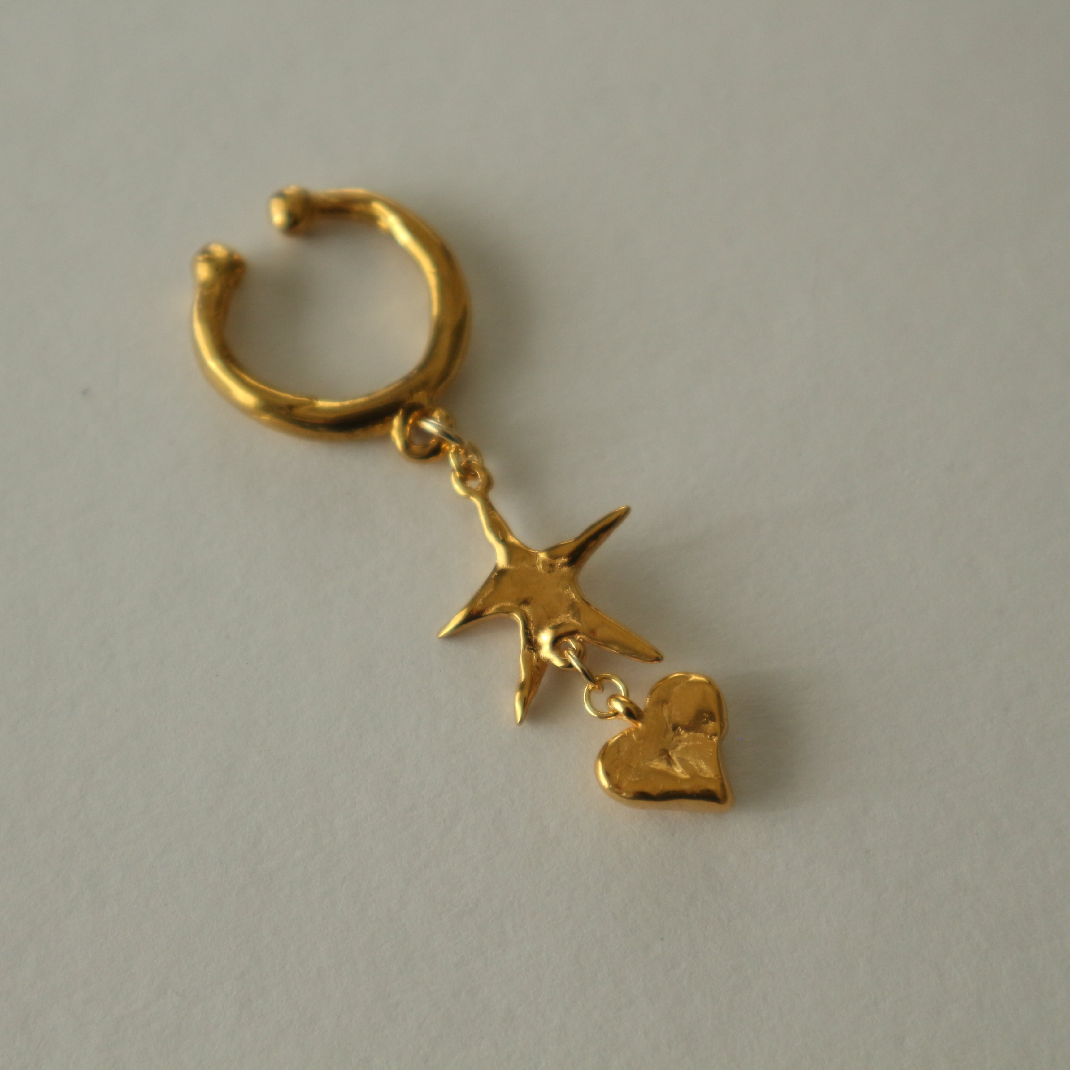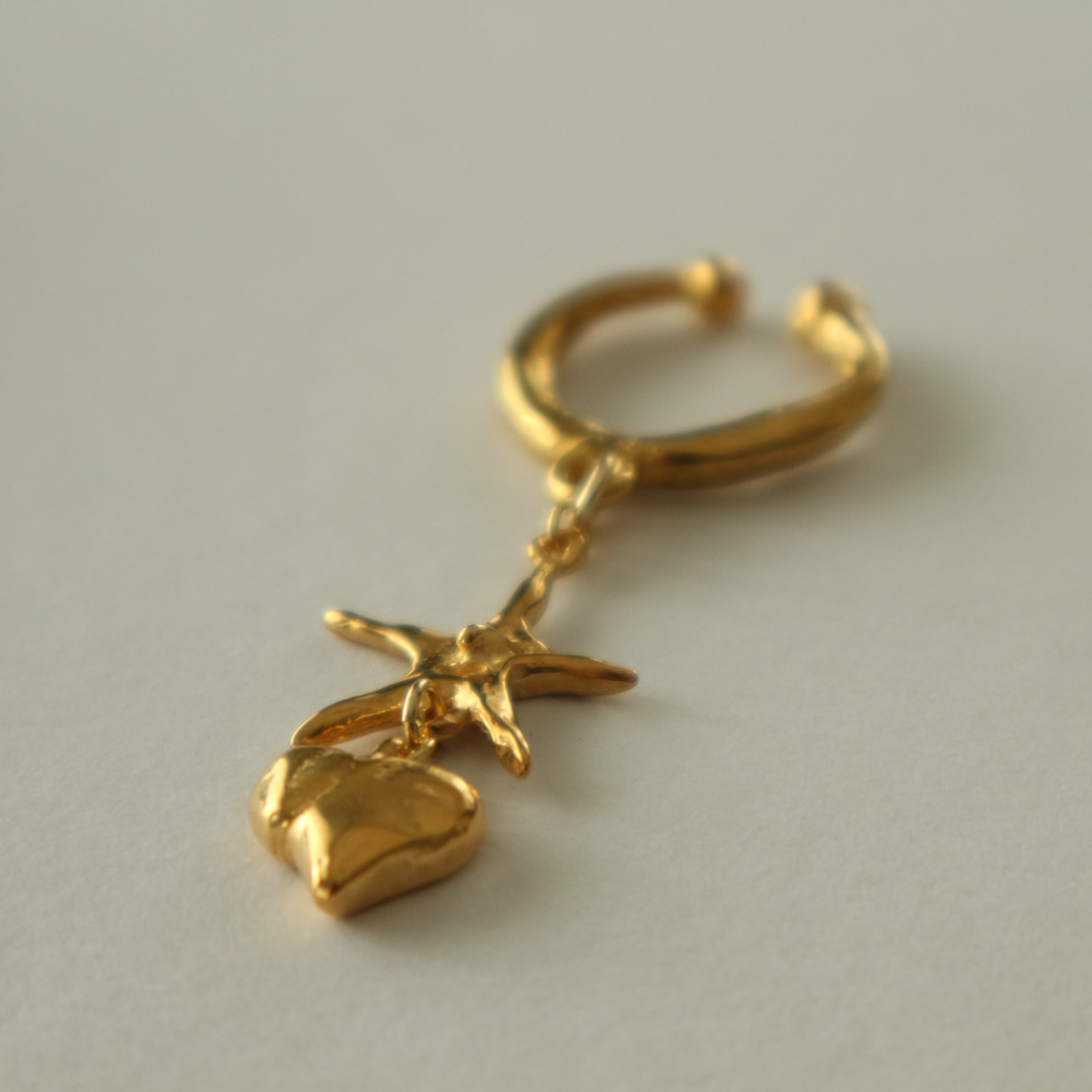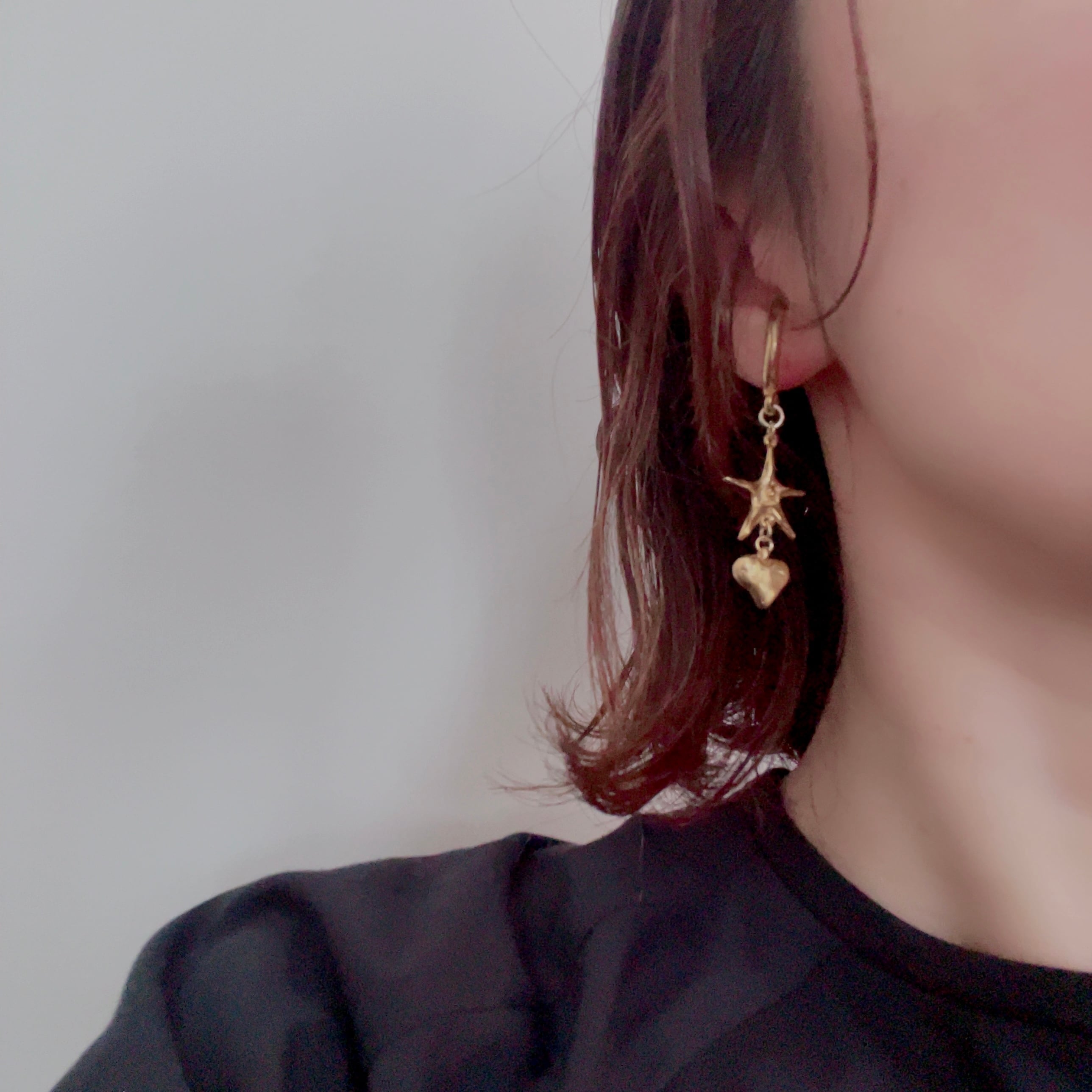 ほほえむ星とふっくらフォルムのハートが耳元で揺れ動けば、