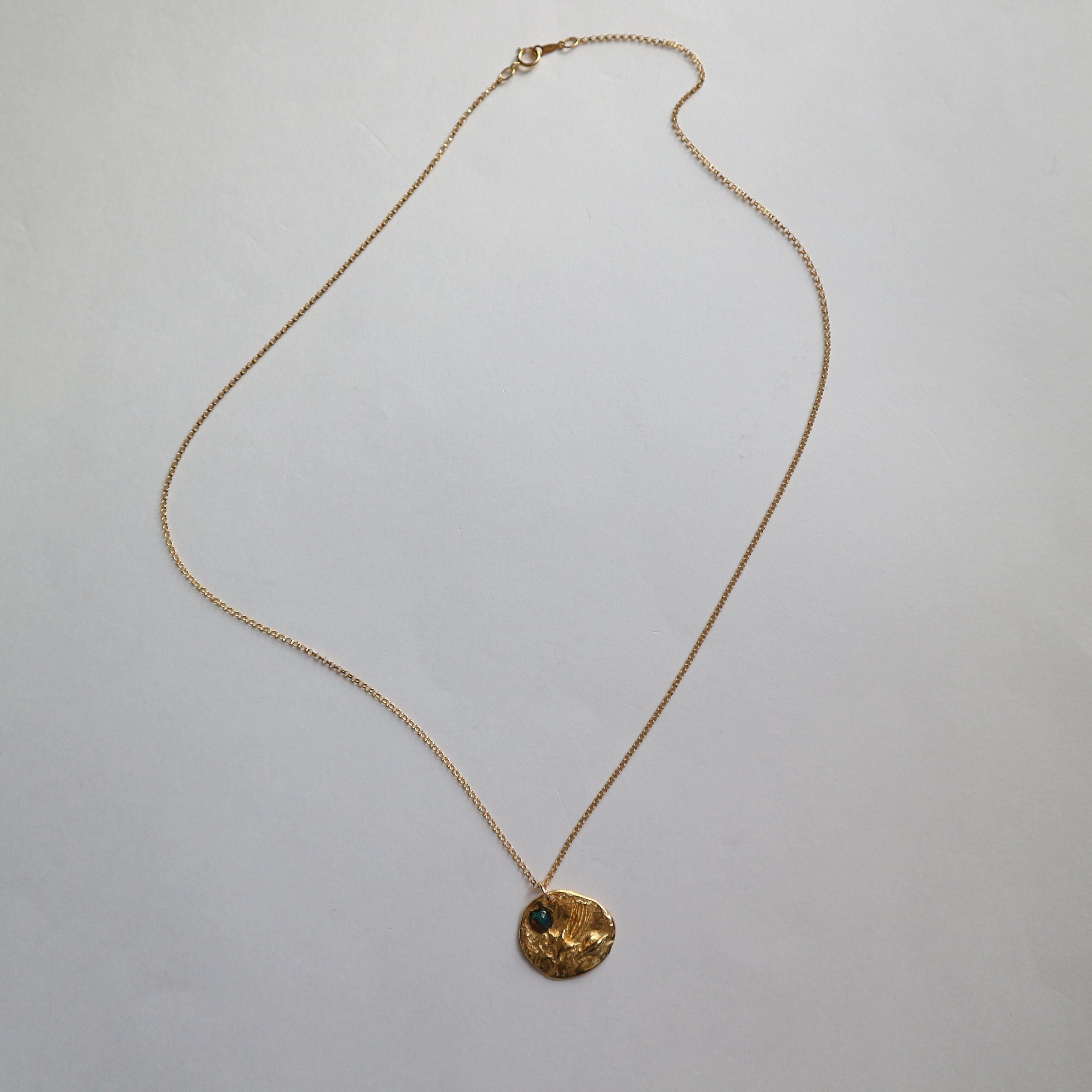 チェーン部分はK14GF、モチーフ部分は真鍮にK18コーティングを施しております。