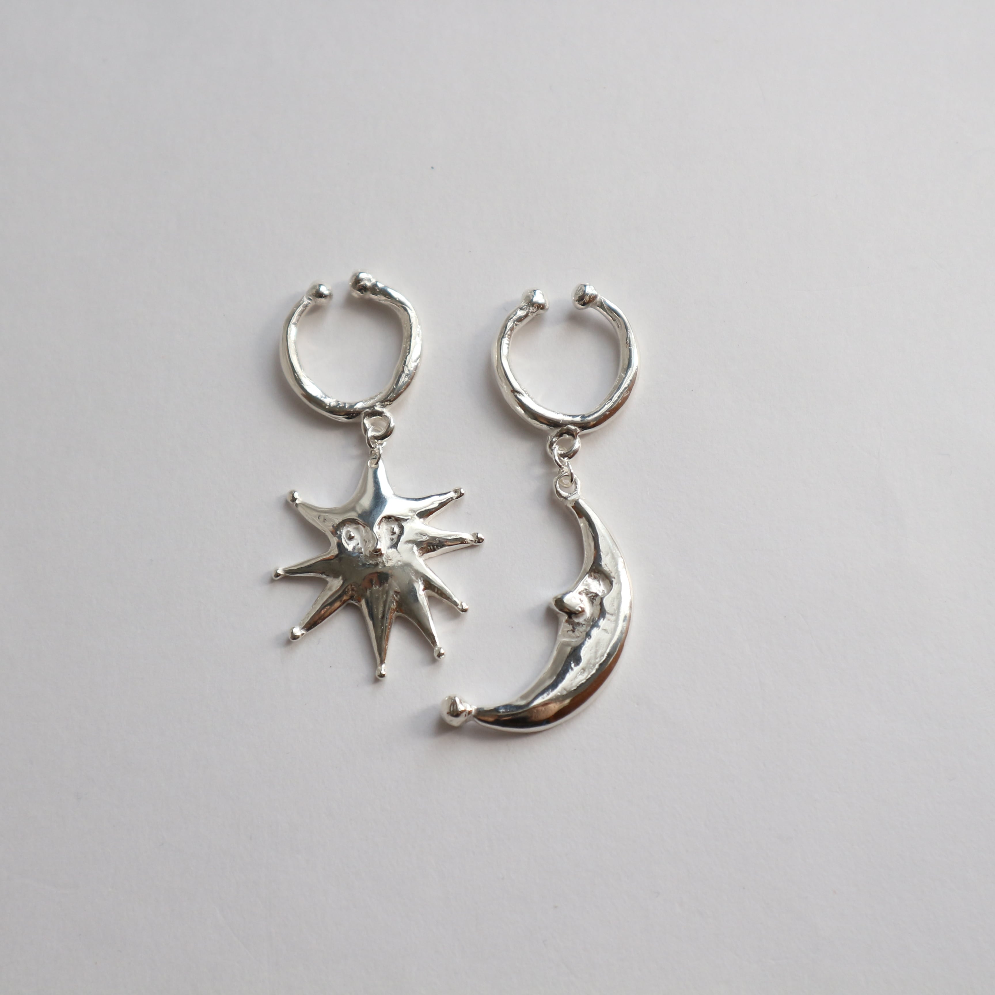 顔のある月のイヤーカフ。かすかに微笑んでおります。