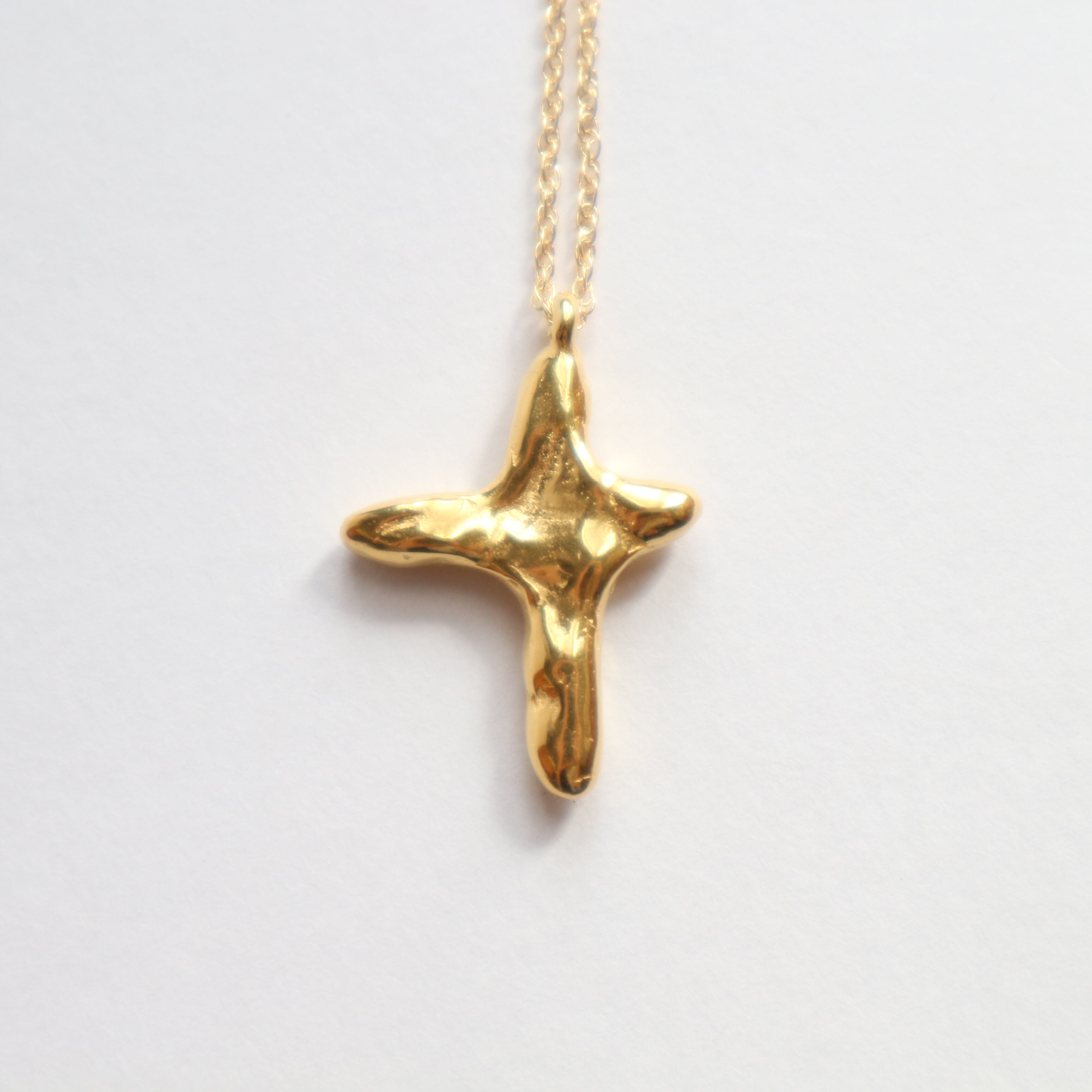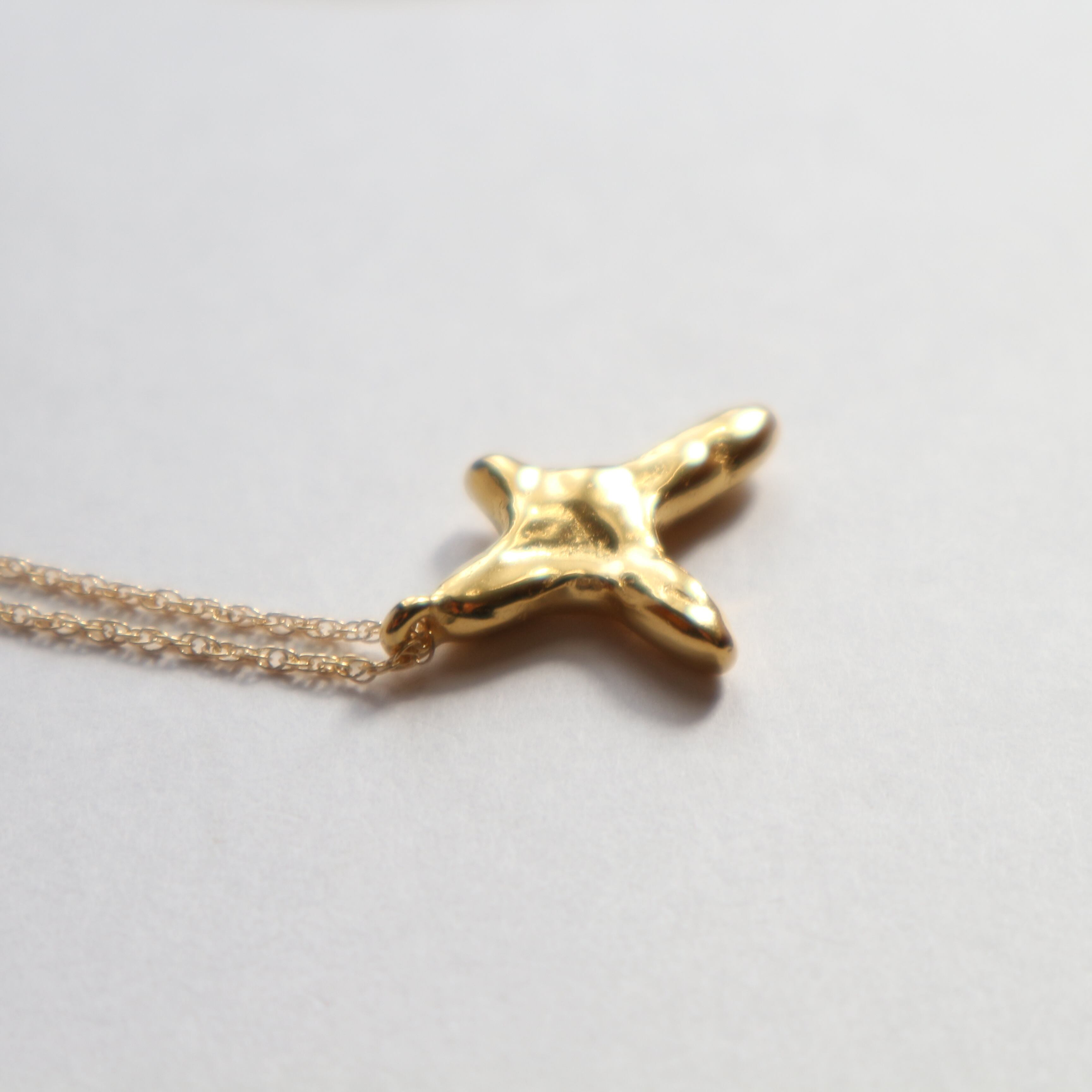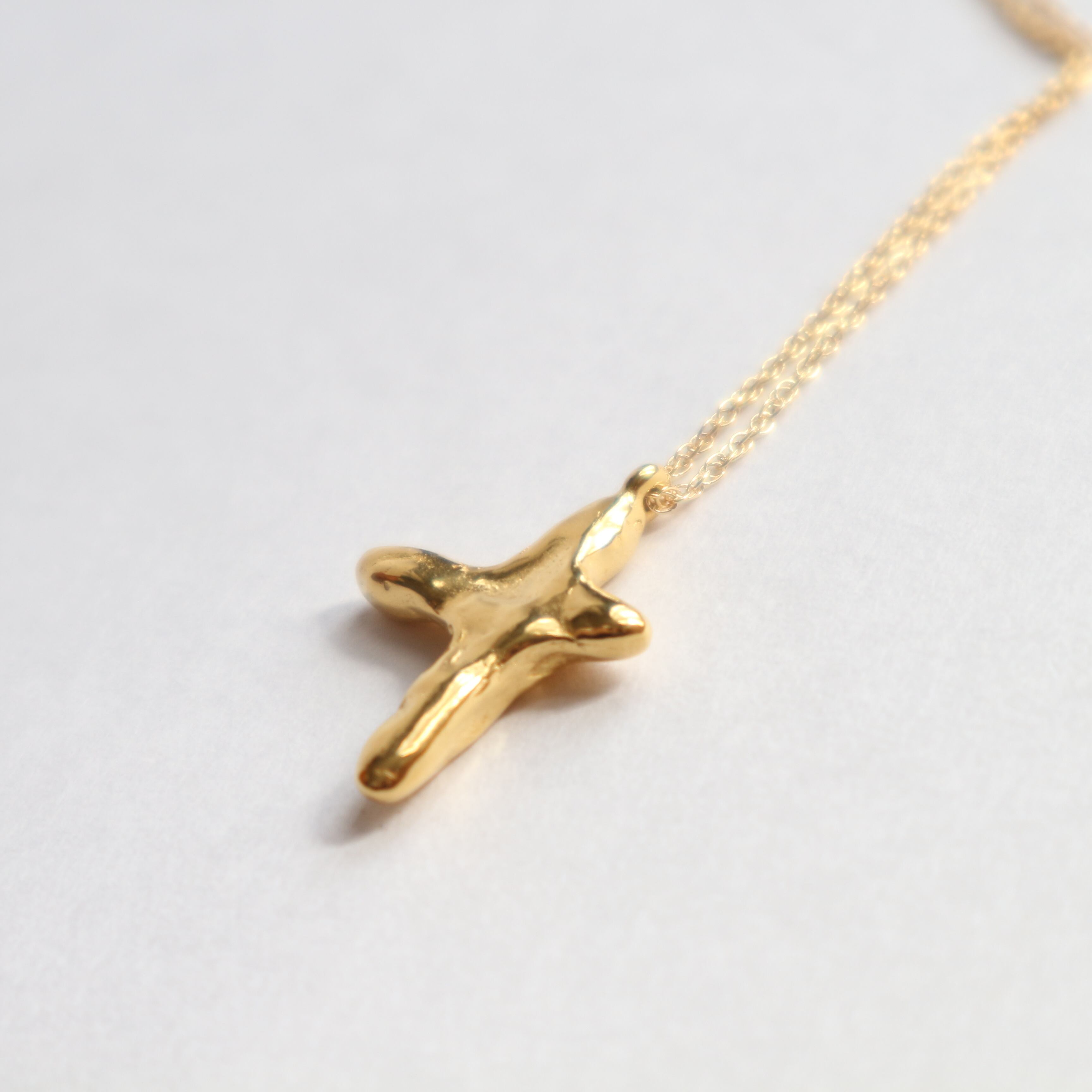 やわらかい印象のフォルムをしたクロスのワントップネックレス。