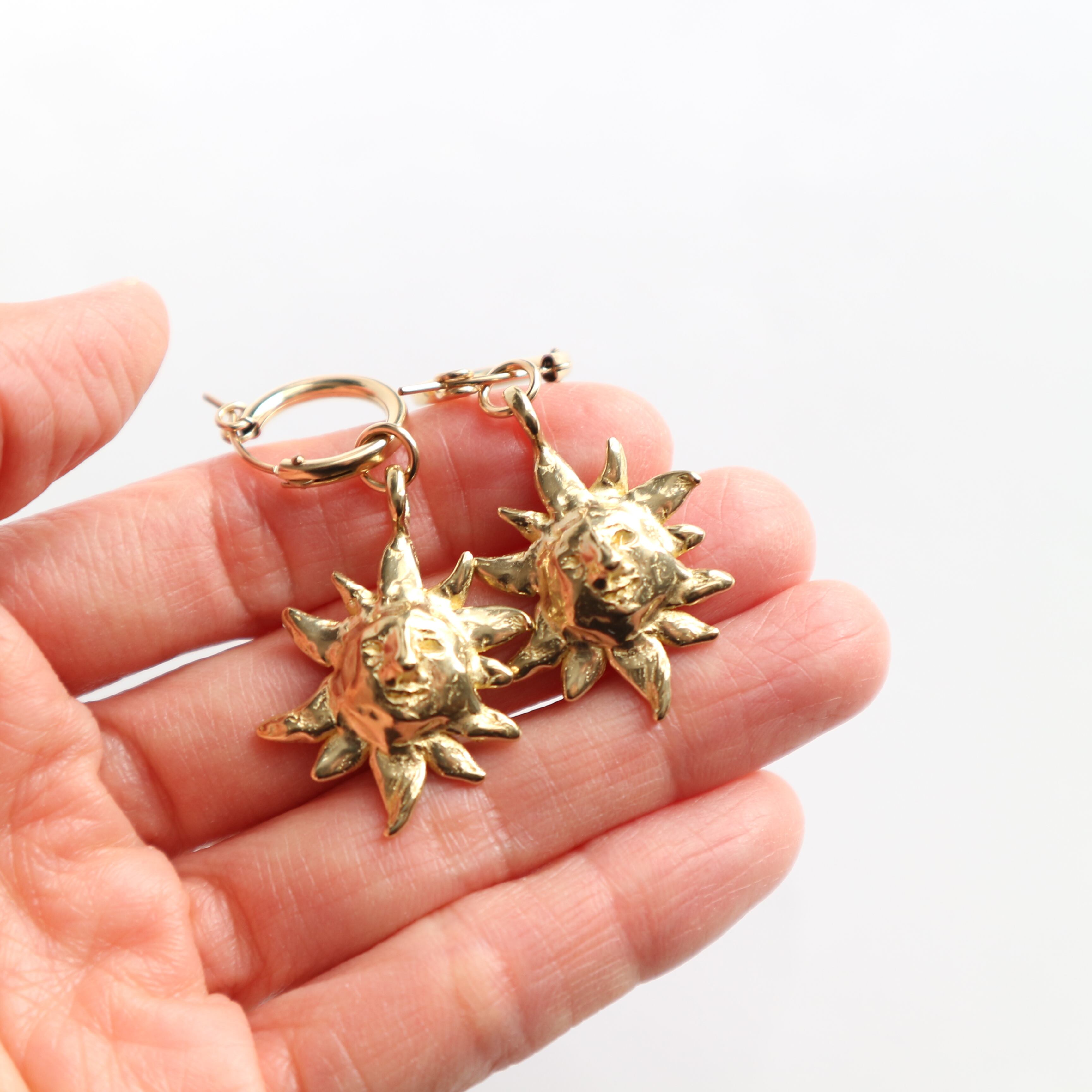 ほほえむ太陽がゆれるフープタイプのピアス。