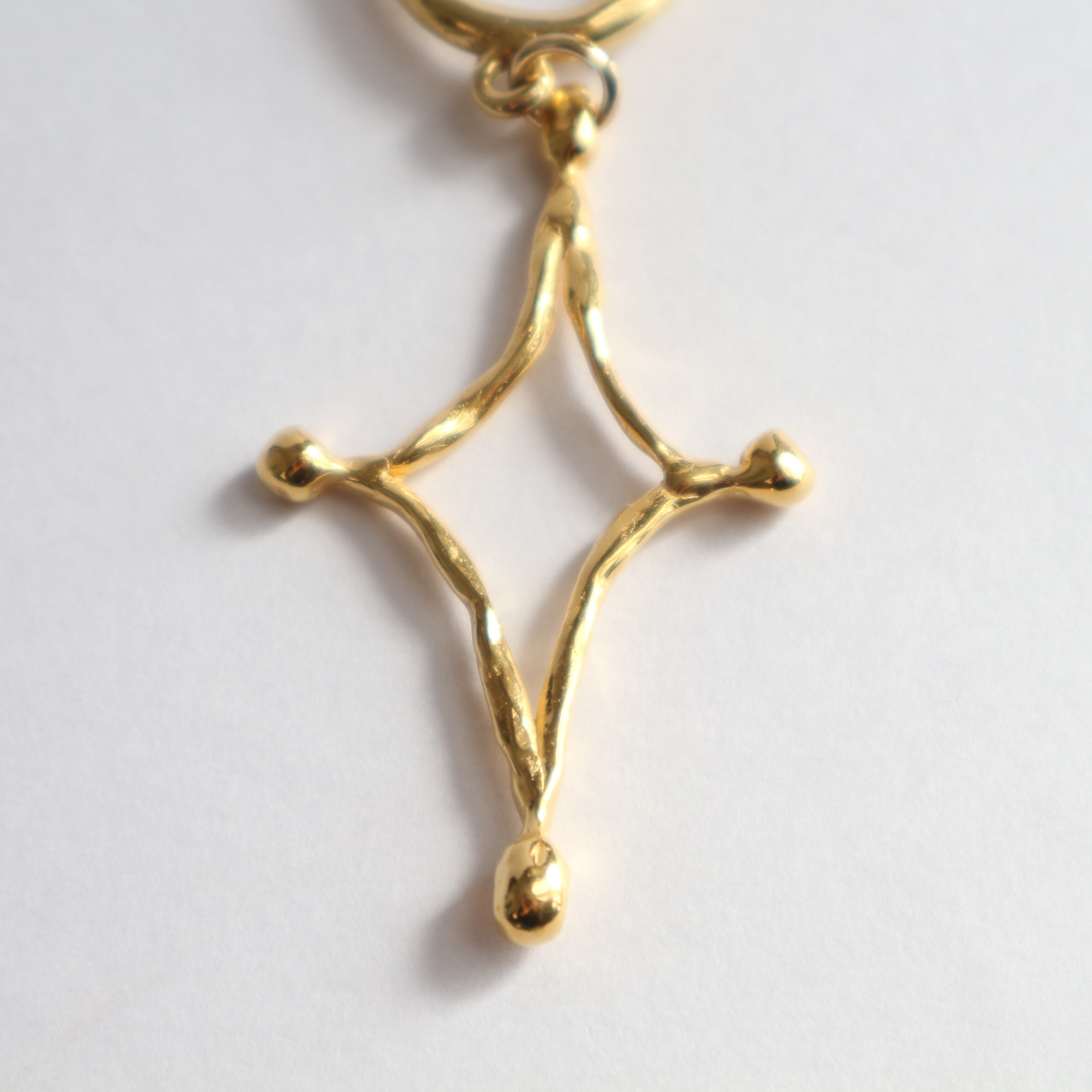 ぼこぼことした線で作りだしたいびつなひし形は、星座を表しております。