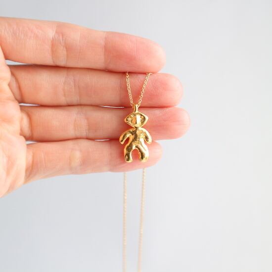 小さな土偶を何気なく首からぶら下げらるネックレスです。