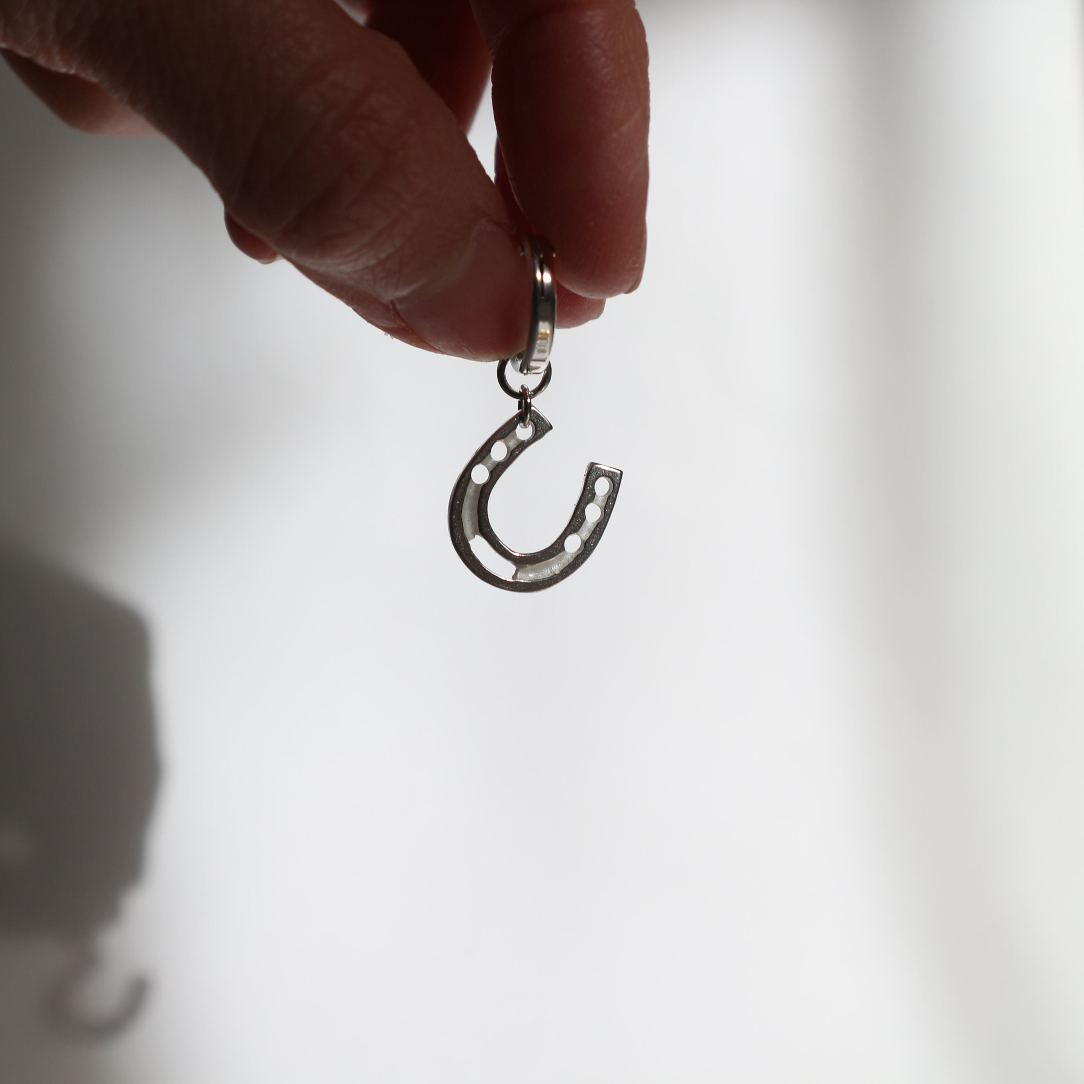 駆けだす馬と蹄鉄をアシンメトリーのフープピアスにしました。