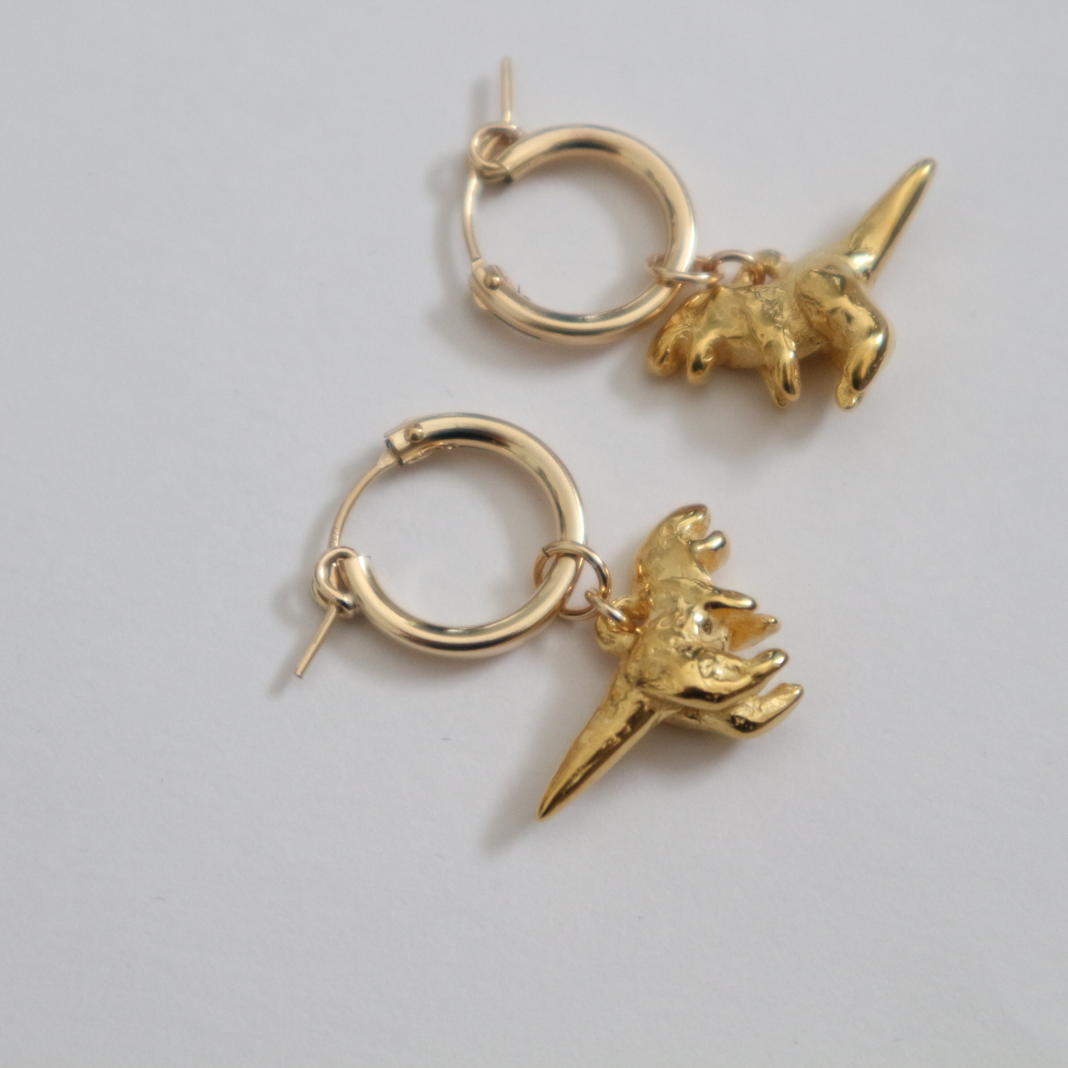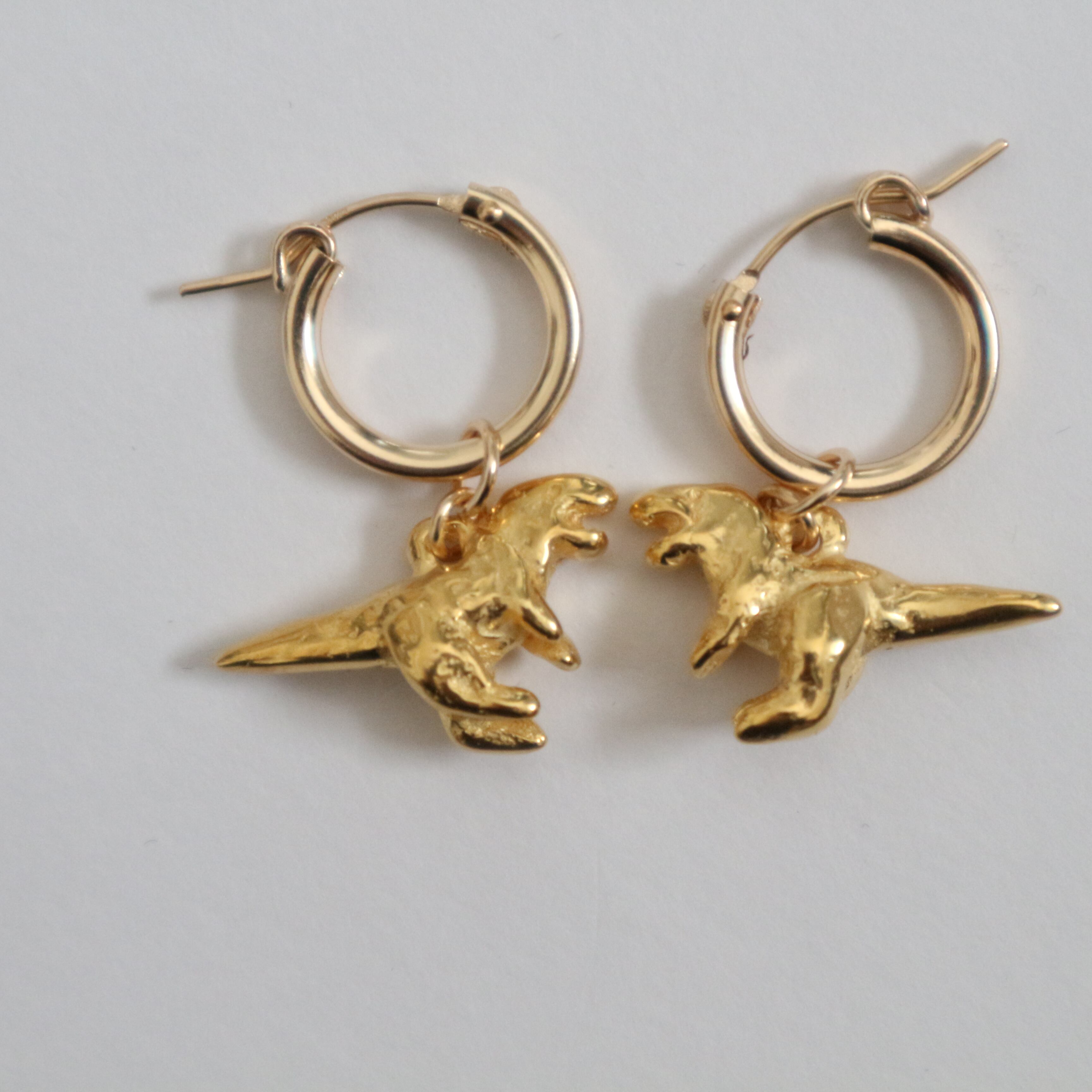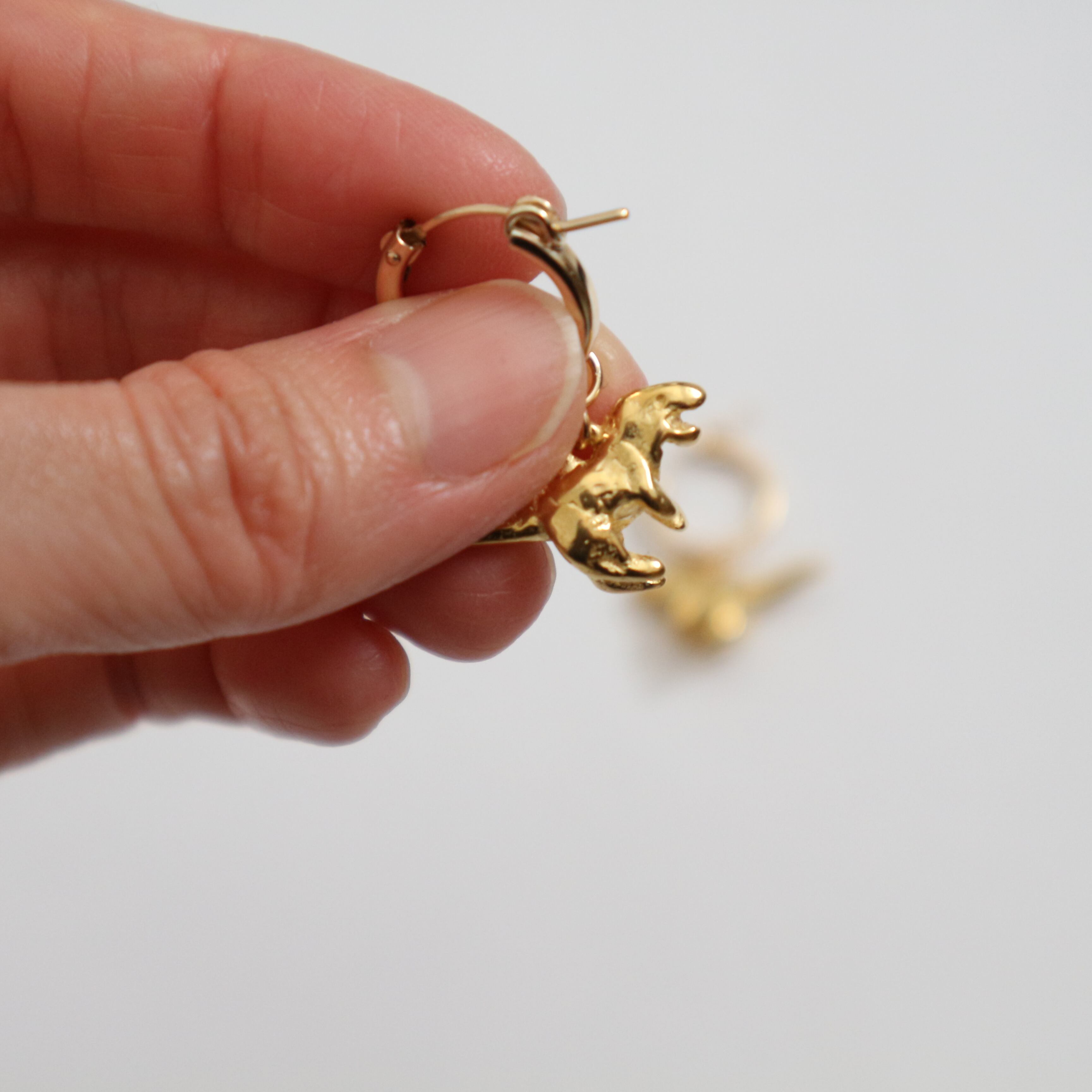 かわいいミニサイズの恐竜をフープピアスにしてみました。