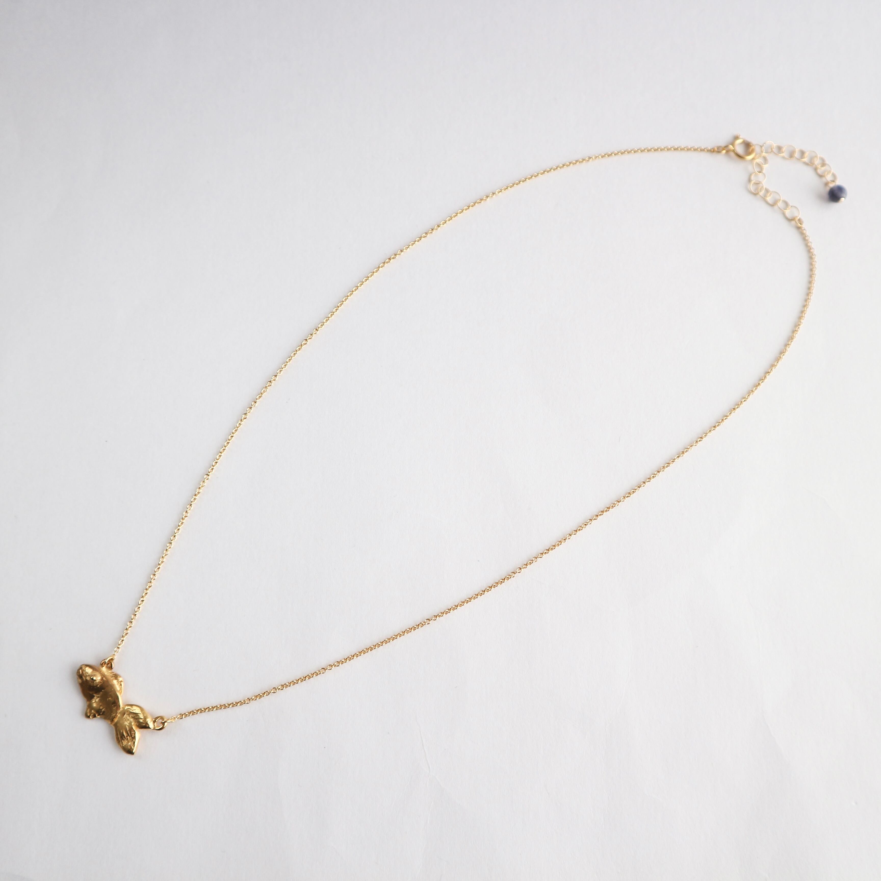 つぶらな瞳の小さな魚をショートネックレスに仕立てました。