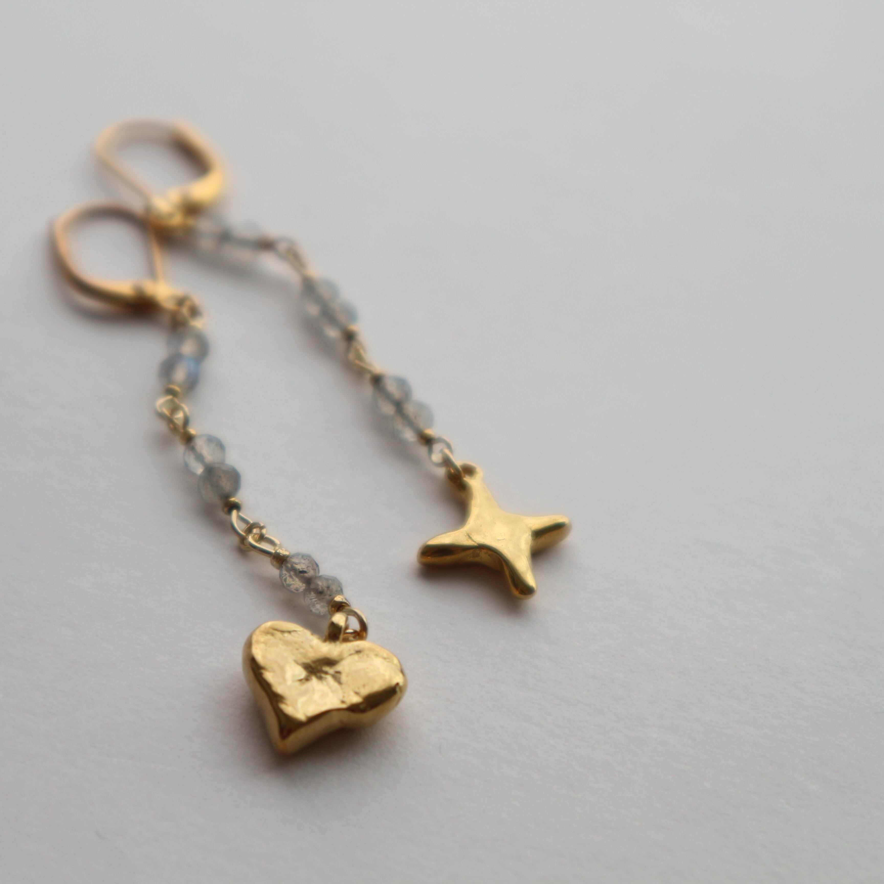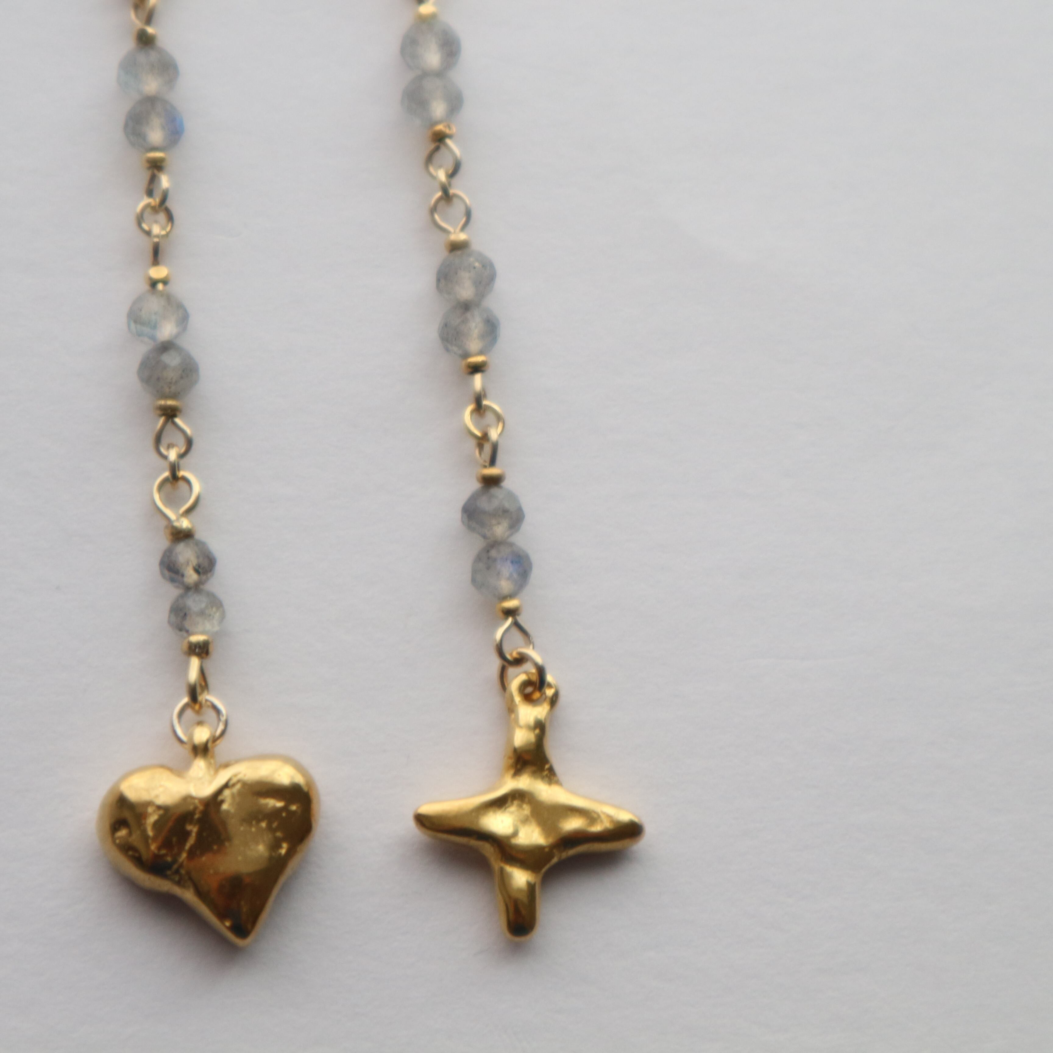 Mini ハートとクロスのラブラドライトのピアス(イヤリング)