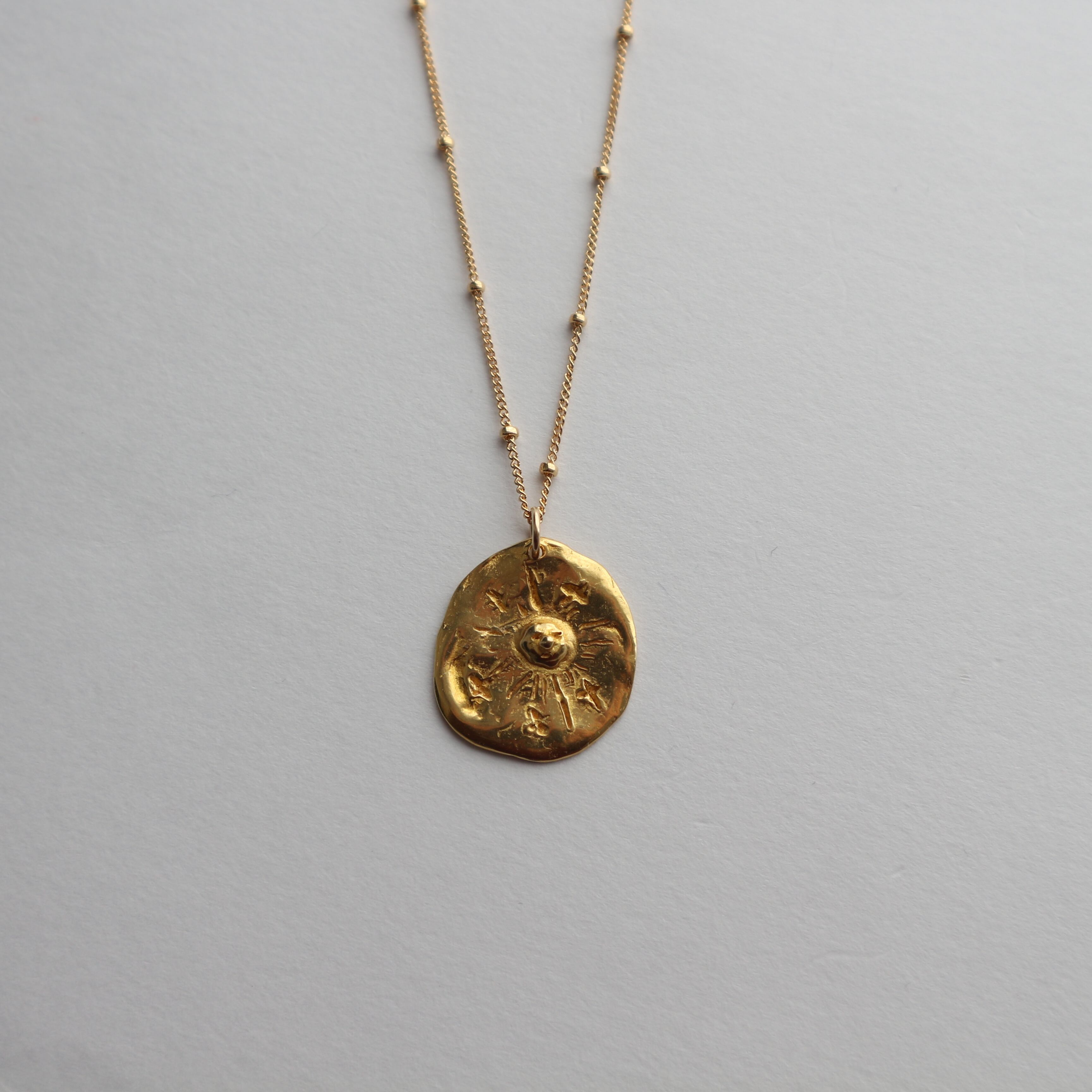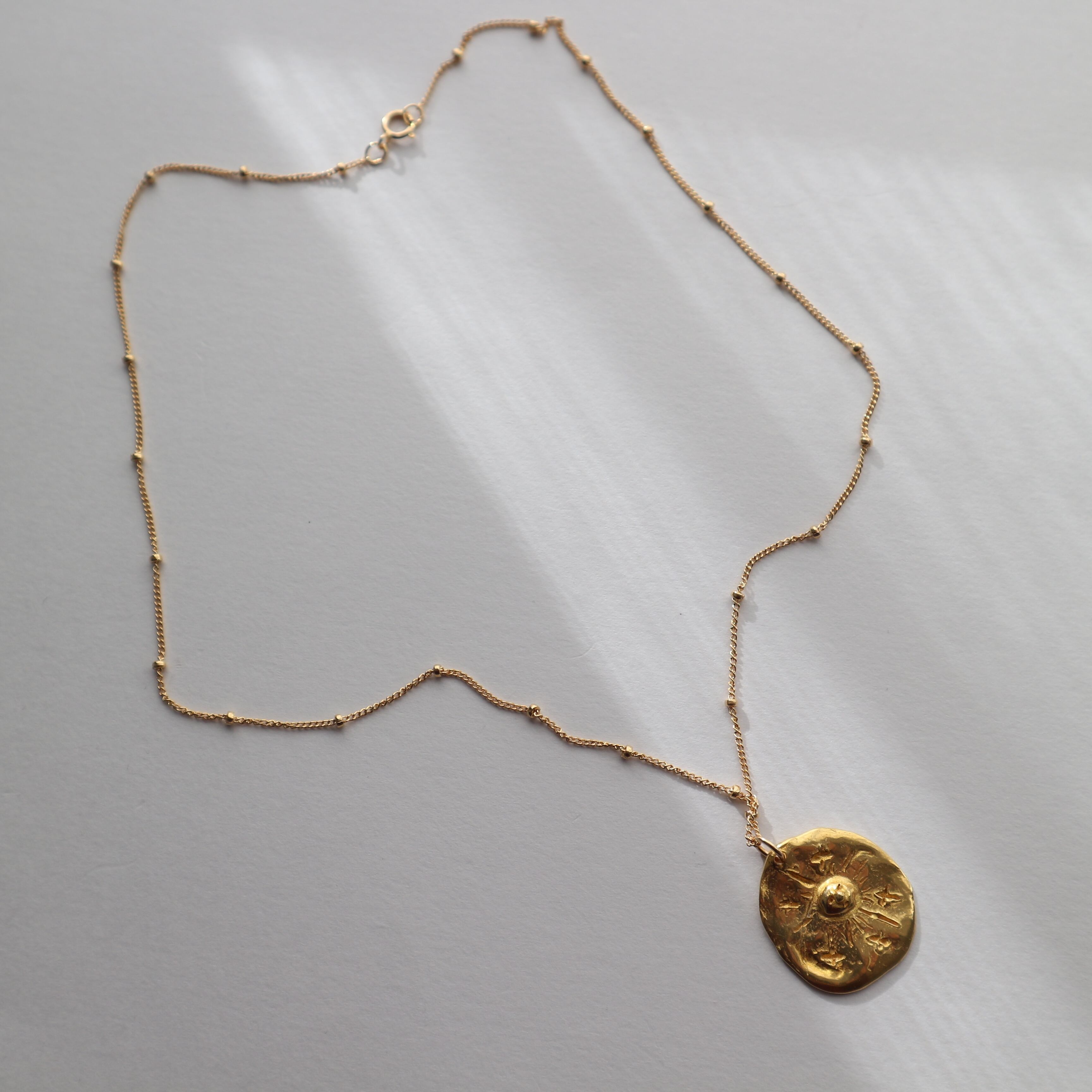 古代の日時計をモチーフにしたプレートのネックレスです。