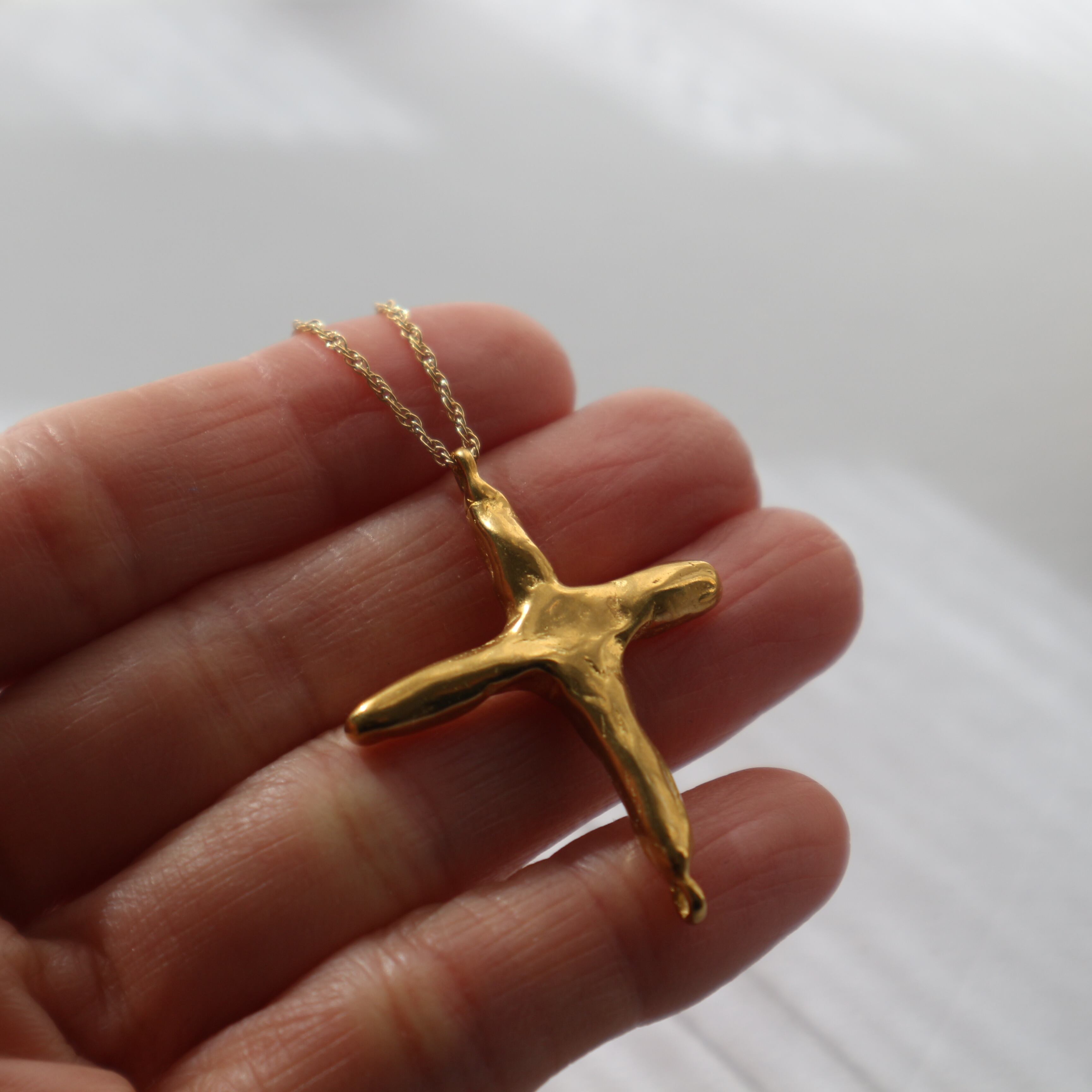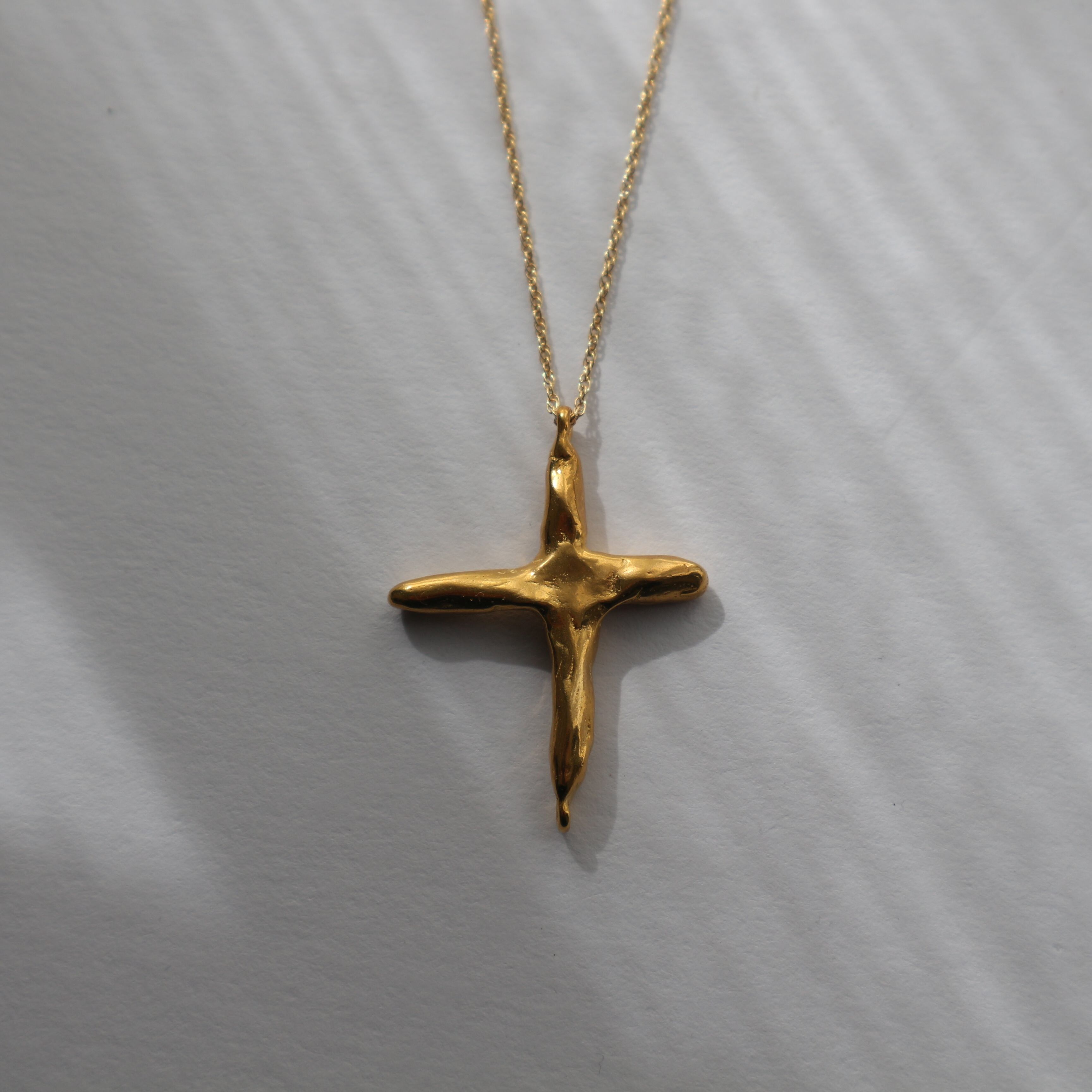 やわらかい印象のフォルムをした大きなクロスのワントップネックレス。