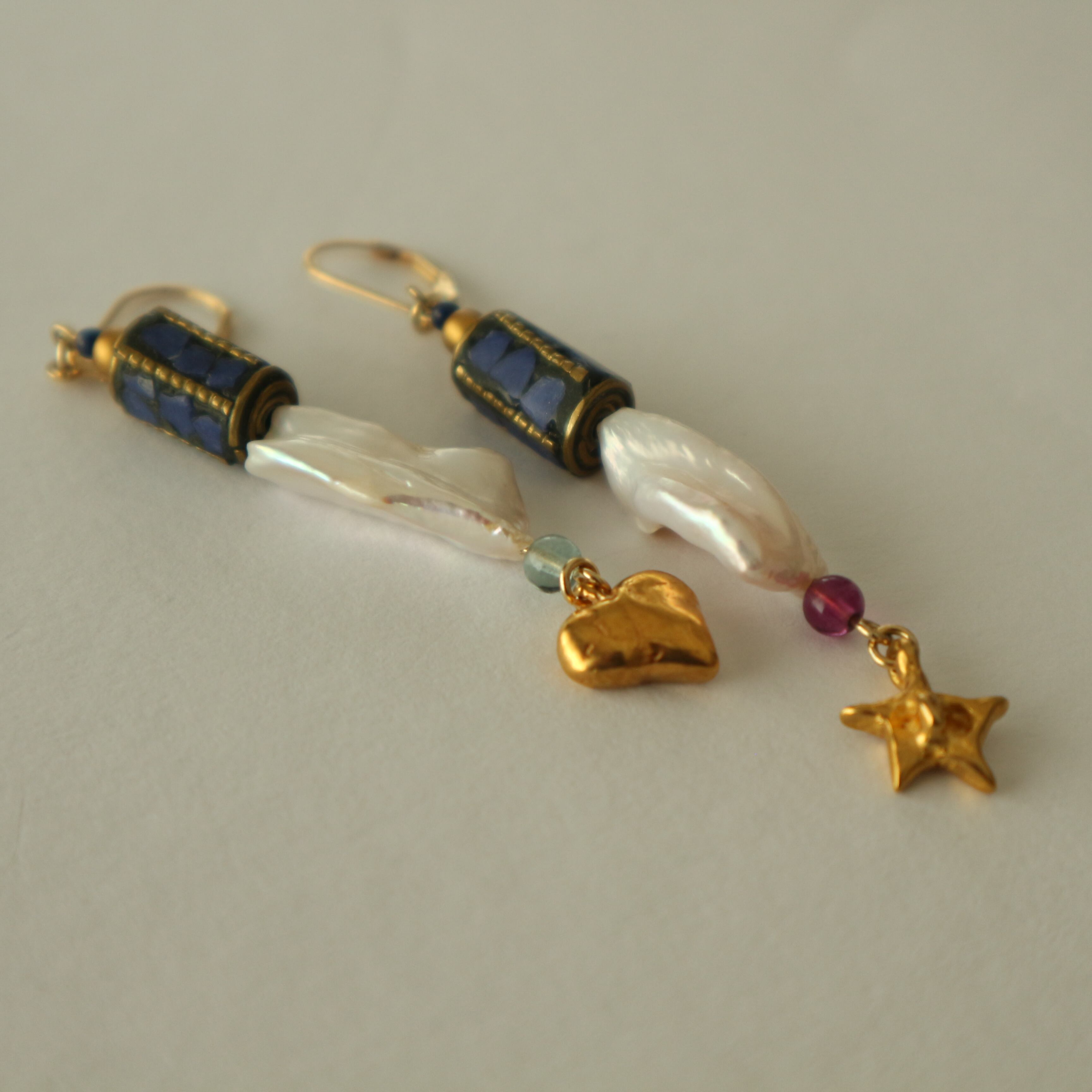 星とハートと青のビーズの耳飾り(ピアス/イヤリング)